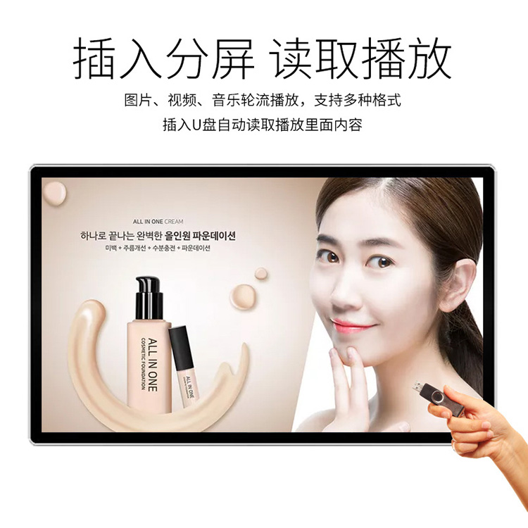 廣告機是利用標準液晶顯示器、液晶電視機,通過聯(lián)網(wǎng)和多媒體系統(tǒng)控制等方式實現(xiàn)信息顯示和視頻廣告播放的新一代智能設(shè)備,不論是銀行、地鐵、戶外廣場、小區(qū)、樓梯口、酒店、房地產(chǎn)還是教育領(lǐng)域,隨處都可見液晶廣告機的身影。高清液晶廣告機,無論是從亮度、尺寸大小方面,或是從圖像清楚度方面,都是同范疇的其它新產(chǎn)品所不能代替的。